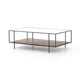 Simple lines, dramatic look. Rectangular coffee table has a pale concrete top and contrasting Parson's style base in matte black iron. Great for indoor and outdoor spaces — cover or store indoors during inclement weather and when not in use.