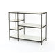 Add a pop of sophistication with a two-tone touch. Slim, antique brass-finished iron forms an X to support tiers of perforated metal and polished white marble, bringing a look of simple grace to the modern coffee table.