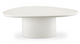 The Eden coffee table features a rounded triangular shape and oval pedestal base, creating a sculptural silhouette that exudes modern sophistication. An ivory white and black high gloss finishes this coffee table's surface, reflecting light, brightening and opening up any space.