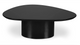 The Eden coffee table features a rounded triangular shape and oval pedestal base, creating a sculptural silhouette that exudes modern sophistication. An ivory white and black high gloss finishes this coffee table's surface, reflecting light, brightening and opening up any space.