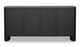 Made from mid-tone brown mango wood, the Dionne 4-door sideboard strikes a balance between natural beauty and contemporary design. Antique brass accents highlight the wood's natural grain, infusing the piece with a modern flair. The soft, curved door design adds a gentle touch, while the sophisticated black frame contrasts with its refined elegance.