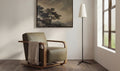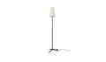 The Mathis floor lamp embodies mid-century elegance with its slender silhouette and tripod base. A vintage-inspired metal stand supports a tapered linen shade, diffusing a soft, inviting glow adding understated sophistication, whether illuminating a reading nook or anchoring a living space.