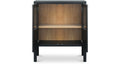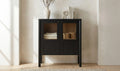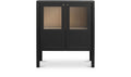 Thoughtfully designed, the Hannah cabinet balances transparency and concealment with tempered glass inserts. Crafted from solid pine, dowel legs and understated bronze hardware add a subtle softness, while the versatile finish complements diverse interior styles.