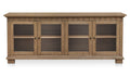 Your good taste, on display. Lillian puts a fresh face on tradition. Crafted from solid ash with a rich wood grain and warm mid-tone finish, it pairs crisp lines with molding details that feel classic. Four glass-front doors let your dinnerware, vintage finds, or everyday essentials shine, while blackened bronze handles bring in just the right contrast. It’s a timeless piece with a clear view.