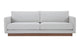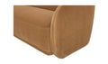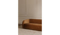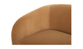 Constructed from solid beech and plywood, the Faye sofa's unique curved back and firm, fixed bench seat rest on petite, rounded rubberwood legs. The neutral tan and faux mohair fabric is denser and more plush than velvet, bringing durability and comfort to its contemporary form--a touch of elegance to expansive living.