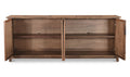 Rustic Meets Refined: The sideboard's rustic character is beautifully balanced by its traditional silhouette, with graceful overhang details on the top and bottom.