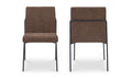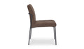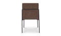 The Danny dining chair marries visual lightness with sumptuous comfort. A slim metal frame curves gracefully, supporting plush dark brown upholstery. The minimalist base imparts an ethereal quality, contrasting beautifully with the padded seat and back.