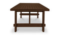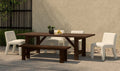 The Edmond outdoor dining table brings timeless elegance to al fresco dining. This FSC-certified solid teak table features a slatted top with stretchers and joinery detailing, evoking a traditional aesthetic with a touch of sophistication. The brown finish adds warmth, while its durable and weather-resistant construction makes it the perfect centerpiece for the patio or garden.