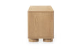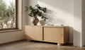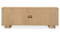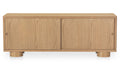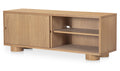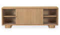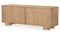 TV called—it wants a better supporting cast. The Hobbs Media Unit keeps the room feeling calm and pulled together, with softly curved lines that read intentional, not fussy. Solid oak edges and legs bring warmth and durability, while oak veneer over MDF keeps the silhouette clean and consistent. Sliding doors hide the not-so-pretty stuff, round inset handles echo the leg detail, and an open compartment keeps everyday essentials within reach.