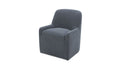 For movers, loungers, and multitaskers. Maisie doesn’t sit still, and neither do you. With a generously padded seat, curved back, and smooth-rolling casters, it’s built for swiveling between snacks, spreadsheets, and second helpings. Wrapped in soft fabrict upholstery, the tailored silhouette looks sharp at the table and right at home wherever it lands.
