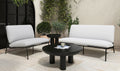 Stone simplicity meets dreamy darkness. Made from fiber-reinforced natural concrete with a jet black finish and set in a sturdy iron frame, the Rocca indoor/outdoor collection's elemental design places material and forms center stage. Featuring a monolithic contemporary look, this side table's supportive pillars and slab tabletop serve for both drama and comfort. Perfect for pairing with plants and accent pieces, combine this table with other pieces from the Rocca collection for the full effect. Please read through the care instructions below to fully enjoy the beauty of this collection for years to come.