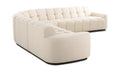 The Roman L-shaped sectional is all about versatility, meticulously designed in five pieces. This piece nods to vintage and modernist aesthetics, featuring classic square tufting that brings depth and texture to any living space. The wide, curved arm profile introduces an element of softness, elegantly contrasting with the geometric/grid-like detailing. Topped with plush seating, it promises unparalleled comfort and style.