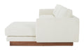 The Vernon sectional blends mid-century design with modern functionality. It features a wooden plinth base for an elevated, lighter appearance. This sectional offers unmatched comfort with removable cushions. Upholstered in durable, OEKO-TEX and Green Guard-certified fabric, it is ideal for family living, combining everyday practicality with durability.
