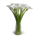 Refined and classic, the interesting blooms of the Calla Lily make a distinctive statement. This arrangement with twenty-four Faux Fresh Calla stems features Green-white flowers  on tall green artificial stems.
