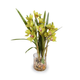 A few inches of clear acrylic "water" solution in a 6" heavy glass cylinder vase holds the natural-looking plants permanently in place.