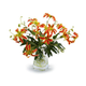 This eye-catching bouquet is made up of realistic red and yellow Gloriosa Lily flowers with tropical Philodendron foliage. Each lifelike piece is carefully arranged by hand and the natural-looking curly stems are permanently set in a clear acrylic "water" solution in the 7" glass bucket vase.