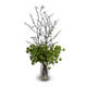 Lifelike Blooming Quince branches covered with white blossoms and green buds are gathered and placed by hand into our distinctive bucket vase. The artificial flower branches are anchored into clear acrylic solution that looks like water. This Faux Fresh arrangement makes a lovely centerpiece!