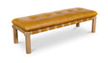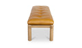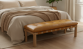 When the materials steal the show. The Costello Bench pairs a solid oak frame with a tufted leather seat wrapped in strap detailing. Upholstered in tan top-grain leather with feather-and-fiber cushioning, it balances comfort with structure. Rounded legs and minimalist lines keep it modern, while natural materials ensure timeless appeal. Costello shows that design feels strongest when materials lead the way.