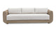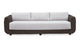 The Cove sofa's elegant design features a soft, curved form atop a sleek plinth base and discreet plastic leg, offering secure, graceful seating. Fully upholstered in a water-resistant, all-weather fabric, the sofa ensures a lasting look suitable for outdoor spaces.