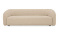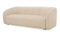 Constructed from solid beech and plywood, the Faye sofa's unique curved back and firm, fixed bench seat rest on petite, rounded rubberwood legs. The exaggerated boucle fabric has a robust 100,000 rub count bringing depth and an art deco feel to its contemporary form--a touch of elegance to expansive living.