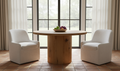 Keeping it simple never looked so good. Hansen leans into clean lines and solid shapes. A cylindrical pedestal base supports a round top with a generous edge, giving the form quiet strength and sculptural presence. Balanced proportions and a rustic oak finish add warmth and character. Minimal in silhouette, rich in detail—this is presence without the performance.