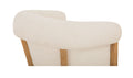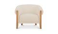 The Jones accent chair's gracefully curved back and sophisticated fold-over detail showcase transitional tub-style, while soft upholstery creates a sleek silhouette. Plush cushioning invites leisurely moments, cradled in comfort, while exposed solid rubber wood legs, enhanced by a wire-brushed finish, add warmth and character.