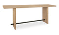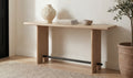 Crafted from solid oak and oak veneer, the Madison console table's graceful bullnose edges and crisp lines create a captivating interplay of form. Sculpted legs adorned with arched carvings are connected by a blackened bronze bar, infusing a subtle industrial chic and offering a sophisticated focal point for entryways or living spaces.