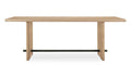 Solid oak tabletop & base edge with oak veneer over plywood tabletop & leg. Metal spreader bar