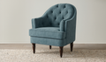 Sit like every seat was made just for you. The Pandora Accent Chair layers tufting, piping, and a soft curved back for heirloom-inspired comfort. Upholstered in playful light blue performance fabric with a velvety hand, it pairs supportive cushioning with dark-stained turned wood legs for a traditional touch. Designed to feel fresh, grounded, and enduring, Pandora brings heritage details into the present with ease.