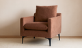 Modern silhouette: A clean, blocked frame with a slightly angled backrest strikes the balance between structured poise and casual ease, giving the armchair versatile presence in any space.