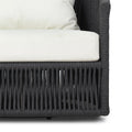 A beautiful rope-based design is woven across a durable, 360-swivel aluminum frame in a rich bronze finish. Topped with a wide cushion and throw pillow, all upholstered in 100% olefin, known for its UV-resistant, water-repellent and quick-drying abilities. Cover or store indoors during inclement weather and when not in use.