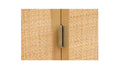 Textured design: Transitional silhouette softened with rattan door fronts and clean lines, blending storage function with modern, natural style.