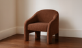 Meet the accent chair that knows how to work a room. The Tuva’s sculptural curves and high back invite you to sink in while making a design statement all on their own. Upholstered in plush toffee-toned velvet, it balances soft touch with everyday durability. A sturdy plywood frame keeps the silhouette grounded while foam-and-fiber cushioning delivers lounge-worthy comfort. Bold yet approachable, Tuva is proof that function and form can both take center stage.