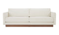 The Vernon sofa blends mid-century design with modern functionality. It features a wooden plinth base for an elevated, lighter appearance. This sectional offers unmatched comfort with removable cushions. Upholstered in durable, OEKO-TEX and Green Guard-certified fabric, it is ideal for family living, combining everyday practicality with durability.