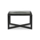 An airy, angular base of charcoal-burnished iron supports a squared tabletop of amber cast glass, perfectly sized to keep your drink or book within reach. Styles well alone or paired in multiples.