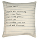 This simple pillow features a canvas background and white hearts. The heart in the bottom right corner says, "To carry all my love for you a hundred hearts would be too few."