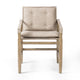 The classic high-back spindle chair gets a dramatic and comfy update with thick loose cushions covered in a classic cream-and-grey striped flax/linen blend.