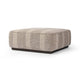 Upholstered in a classic cream-and-grey striped flax/linen blend paired with a solid brown wood base, this 36" square ottoman can be placed just about anywhere – bringing with it a traditional vibe. Style with a tray as a design-forward coffee table.