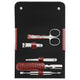 - Includes nail clippers, nail scissors, nail nipper, cuticle nippers, cuticle scissors, sapphire nail file, slant tweezers, straight tweezers, pointed tweezers, 2-in-1 manicure tool