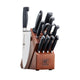 Includes: 3" Paring Knife, 4" Paring Knife, 5.5" Fine Edge Prep Knife, 5" Serrated Utility Knife, 8" Bread Knife, 5.5" Flexible Boning Knife, 7" Hollow Edge Santoku Knife, 8" Chef's Knife, 6" Meat Cleaver, 8 Forged 4.5" Steak Knives, Kitchen Shears, 9" Sharpening Steel, Block Bamboo 19 slots