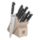 2.75" Bird's Beak Peeling Knife, 4" Paring Knife, 5" Serrated Utility Knife, 5.5" Fine Edge Prep Knife, 7" Santoku Knife HE, 8" Bread Knife, 8" Chef's Knife, Twin Shears, Twin 9" Steel, Storage Block