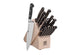 The 18-piece block set features all the knives you need to set your kitchen up right. From the small bird’s beak peeling knife for precise, intricate cuts to the all-rounder 8-inch chef’s knife for slicing and dicing, this set contains the key knives for all tasks, along with a sharp and sturdy set of 8 steak knives, kitchen shears, and a sharpening steel to keep your fine edge knives in tip top shape. The set comes housed in a handsome bamboo knife block.