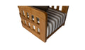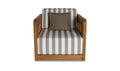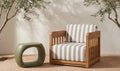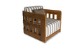 The Adelaide outdoor accent chair infuses the outdoor space with vintage-inspired charm. This contemporary accent chair features a solid teak frame and quick-dry foam cushions upholstered in 100% Olefin fabric. The brown and white striped cushions, accented with a solid tone toss pillow, create visual interest without overwhelming. The curved windowpane detailing nods to vintage designs while maintaining a modern aesthetic.