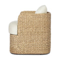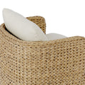 A classic barrel back silhouette meets coastal inspiration with a chunky woven texture. Neutral upholstery and simple shaping make this outdoor dining chair fit in a number of spaces. Casters offer easy flexibility. Cover or store indoors during inclement weather and when not in use.