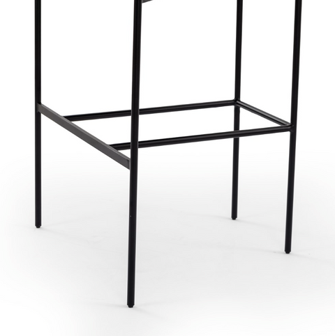 Airy and light with slim, black-finished iron framing, slate-colored performance boucle lends texture to a beautifully sculpted bar stool featuring a yoke back plus fold detailing. Easy to clean and...