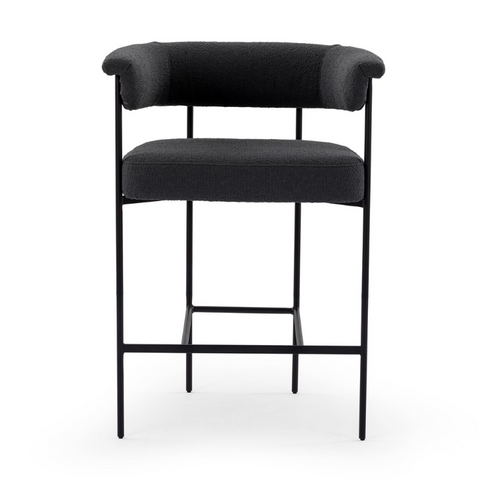 Airy and light with slim, black-finished iron framing, slate-colored performance boucle lends texture to a beautifully sculpted counter stool featuring a yoke back plus fold detailing. Easy to clean and...