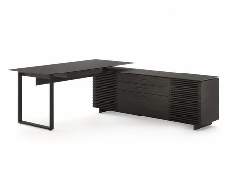 This handsome L-shaped executive desk provides plenty of workspace and storage, whether placed in a corner or commanding the center of a home office. Features Adjustable Shelves Keyboard Drawer Wire...