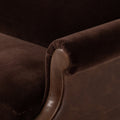 Inspired by traditional antiques, this stately chair is styled with tonal textures for a heritage look and feel. Crafted with top-grain Italian leather, cotton-blend velvet and solid wood, this chair features petite roll arms with pleated detailing, high legs and classic curves. Sourced from one of the oldest family-owned tanneries in Italy’s Bassano del Grappa, heirloom leather is salvaged and processed from upcycled hides featuring an abundance of natural markings, scars and color variations. The result? Beautifully supple, buttery soft hides with an unmatched depth of color and richness, and an authentic lived-in look.