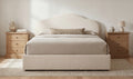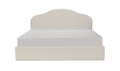 A softer take on tradition. The Maggie Bed reimagines a classic arched headboard with a tapered silhouette and tonal twisted trim for subtle detail. Upholstered in cream polyester, the rounded footboard echoes the headboard’s softness for a cohesive look. Beneath the mattress, a hydraulic lift reveals hidden storage, showing how timeless curves can deliver everyday practicality.