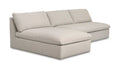 The Miles outdoor modular 2 piece offers the comfort of indoor furniture with the durability of outdoor design. This chaise features a sturdy aluminum frame and is upholstered in fade-resistant 100% Olefin fabric. The quick-dry foam ensures fast recovery after wet weather, providing a consistently comfortable seating experience.